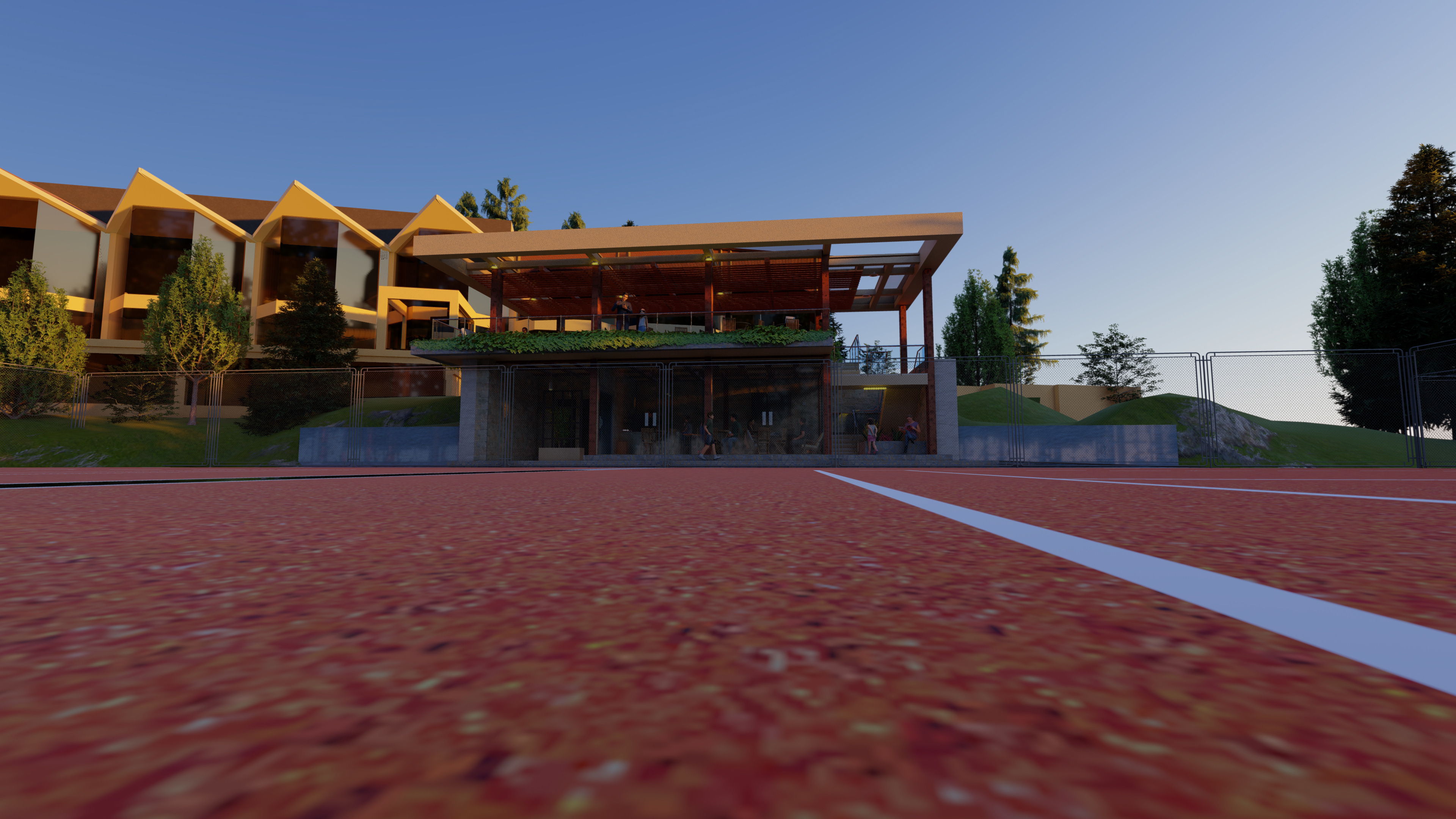 This project proposes the transformation of an underused space within Block 1 of the Club de Tenis La Paz into a small architectural refuge—a place of rest, socialization, and reconnection with materiality and light. The design aims to elevate an otherwise overlooked corner into a warm and welcoming micro-environment.